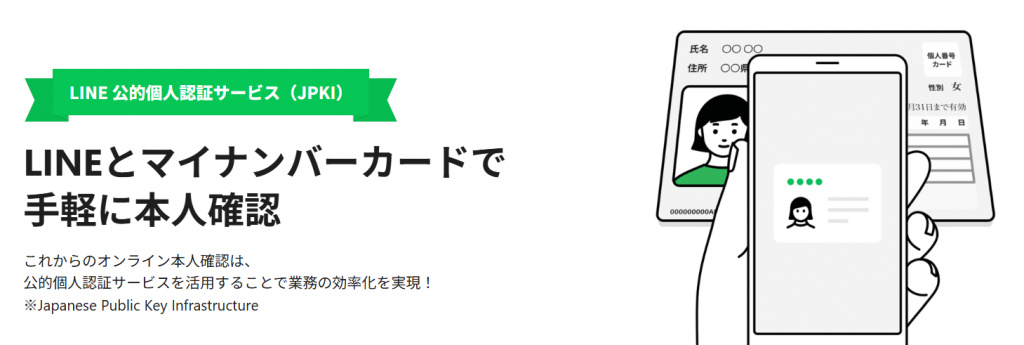 LINEグループが提供する公的個人認証サービス(JPKI)です。マイナンバーカードを活用し、LINE上でオンライン本人確認を完結できます。従来のeKYCと異なり、日本の公的個人認証基盤を利用するため、なりすまし防止に強く、行政手続きや厳格な本人確認が求められる業務にも対応可能です。