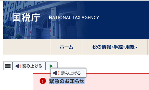 実際、現在の国のWebサイトには、視覚障害者向けに「読み上げ機能」が標準搭載されています。