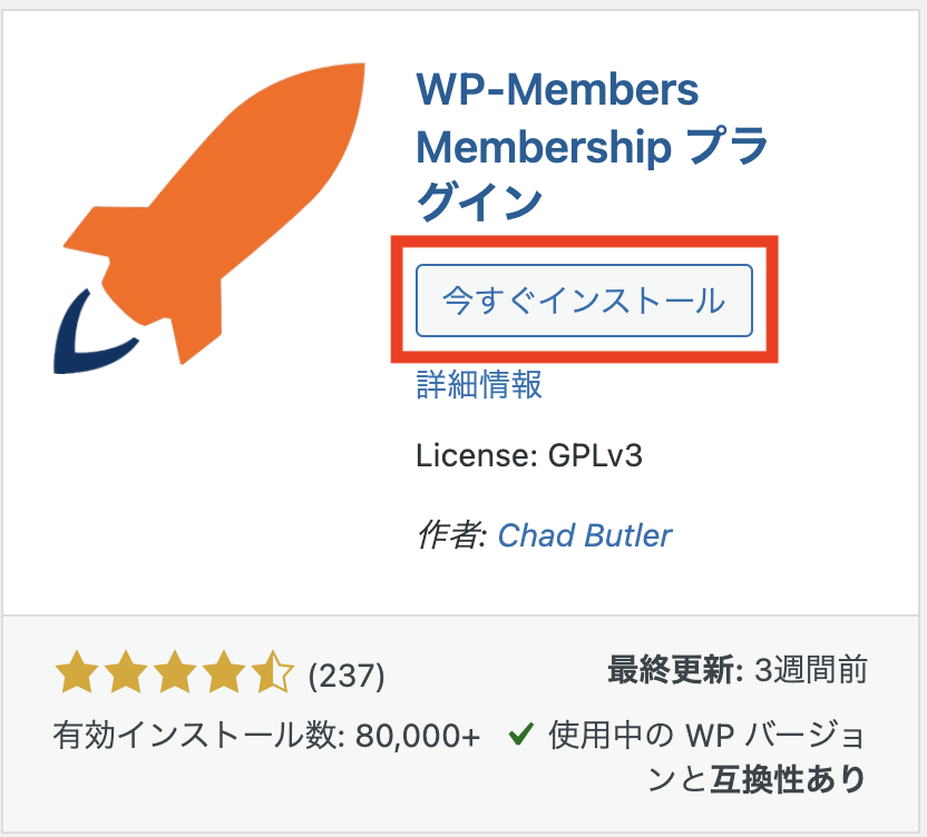 検索欄に「WP-Members Membership Plugin」と入力して検索を実行します。