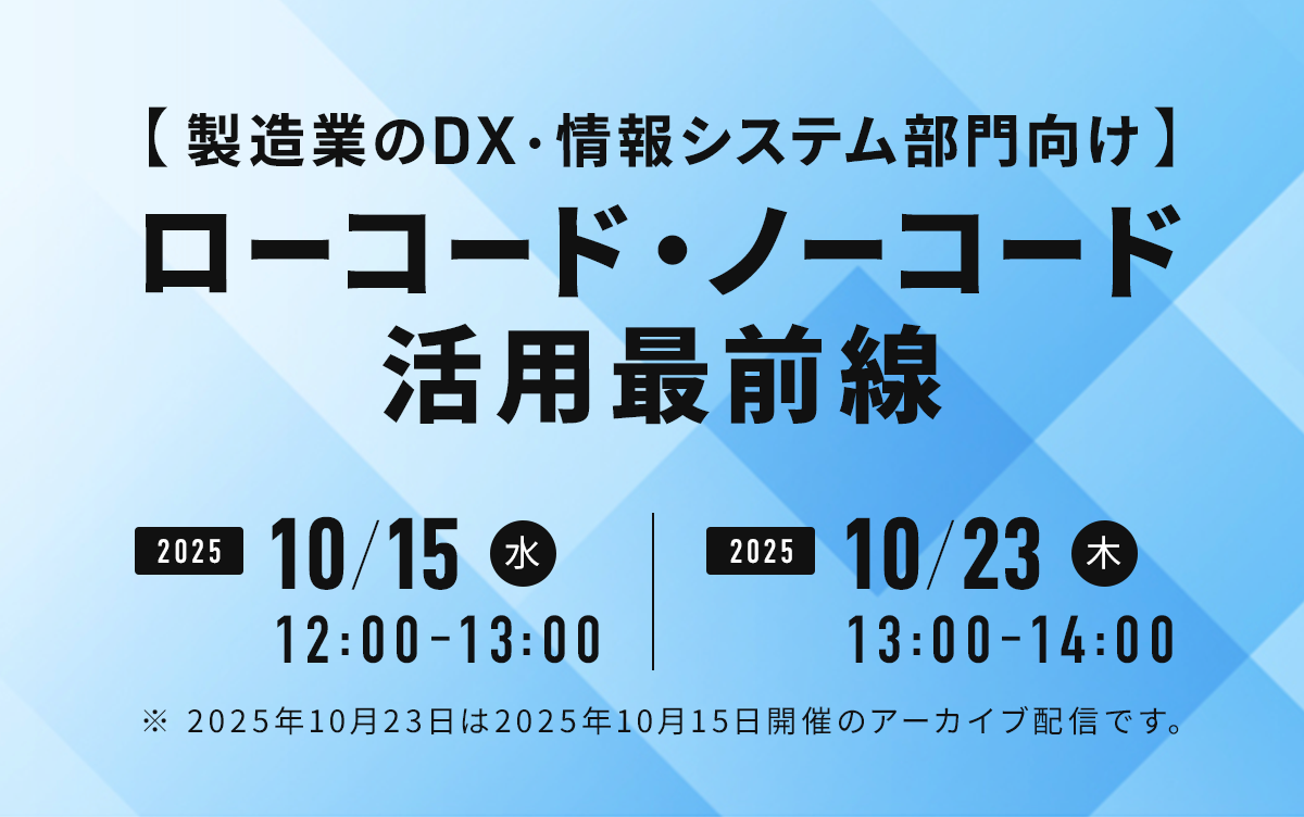 本ウェビナーでは、製造業におけるローコード・ノーコードの最新活用事例や、導入時につまずきやすいポイント、そして効果的な運用のポイントを、事例を交えてわかりやすく解説します。