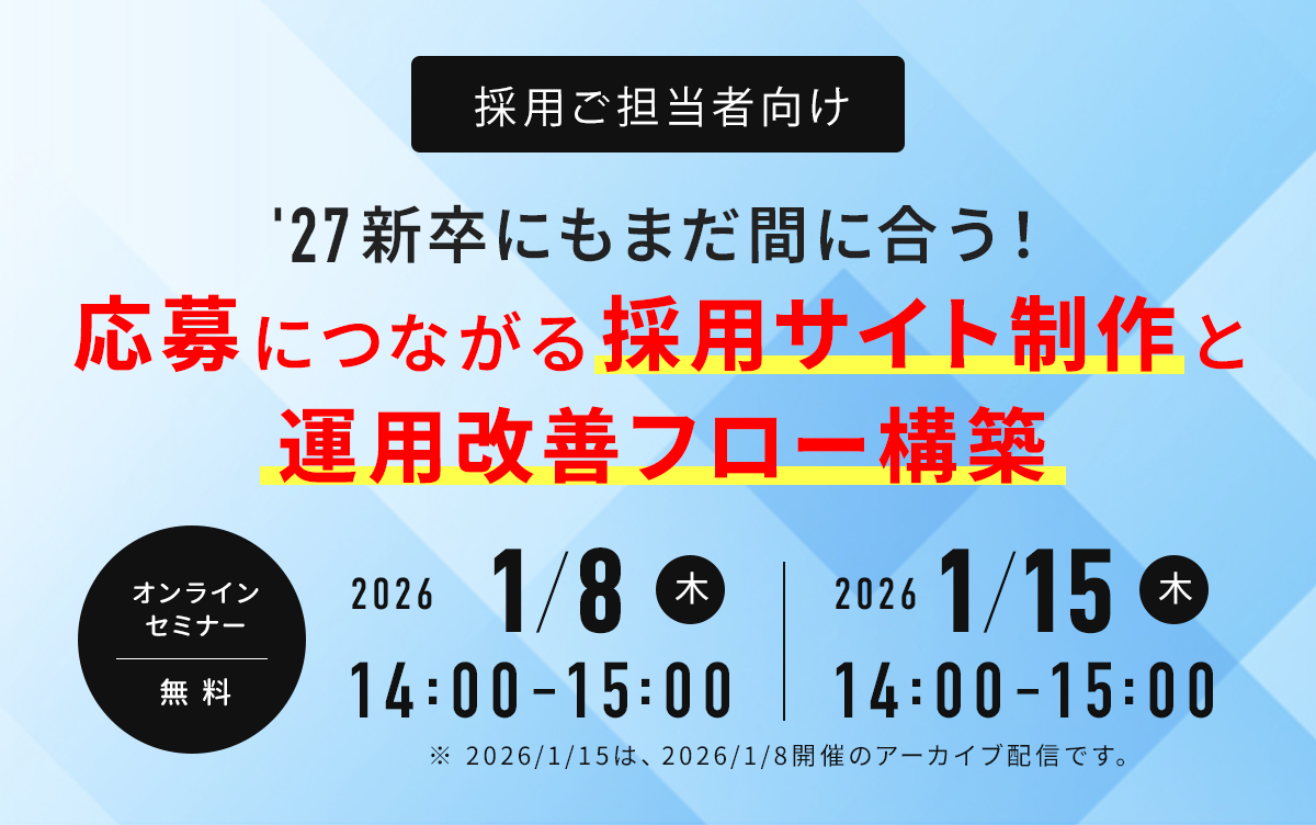 - 【採用ご担当者向け】'27新卒にもまだ間に合う!応募につながる採用サイト制作と運用改善フロー構築