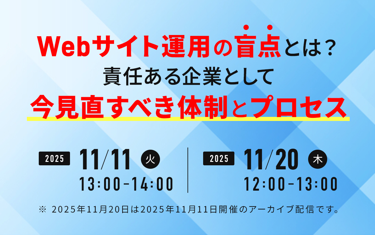 本ウェビナーでは、Webサイト運用に潜む構造的な課題を整理し、責任ある企業が今見直すべき体制・プロセスについて、実践的な視点で解説します。