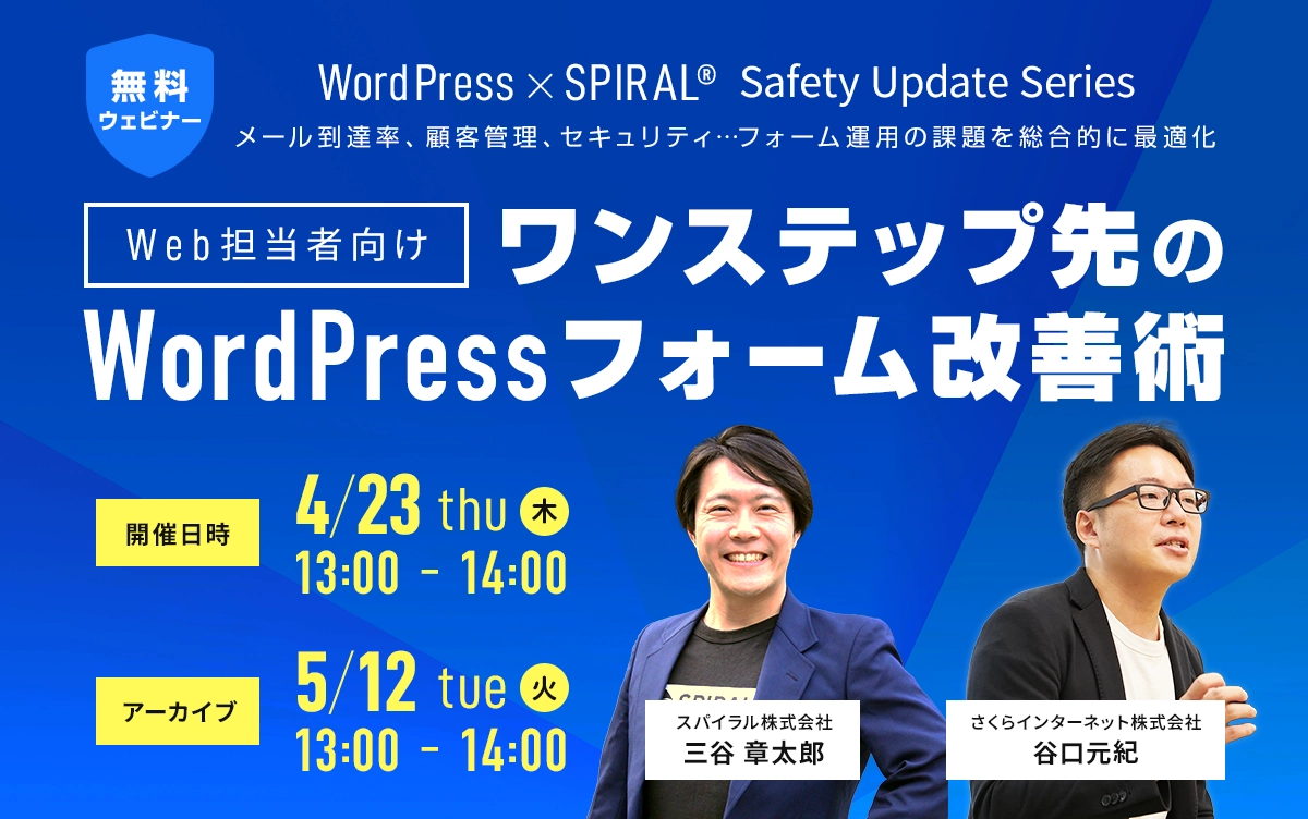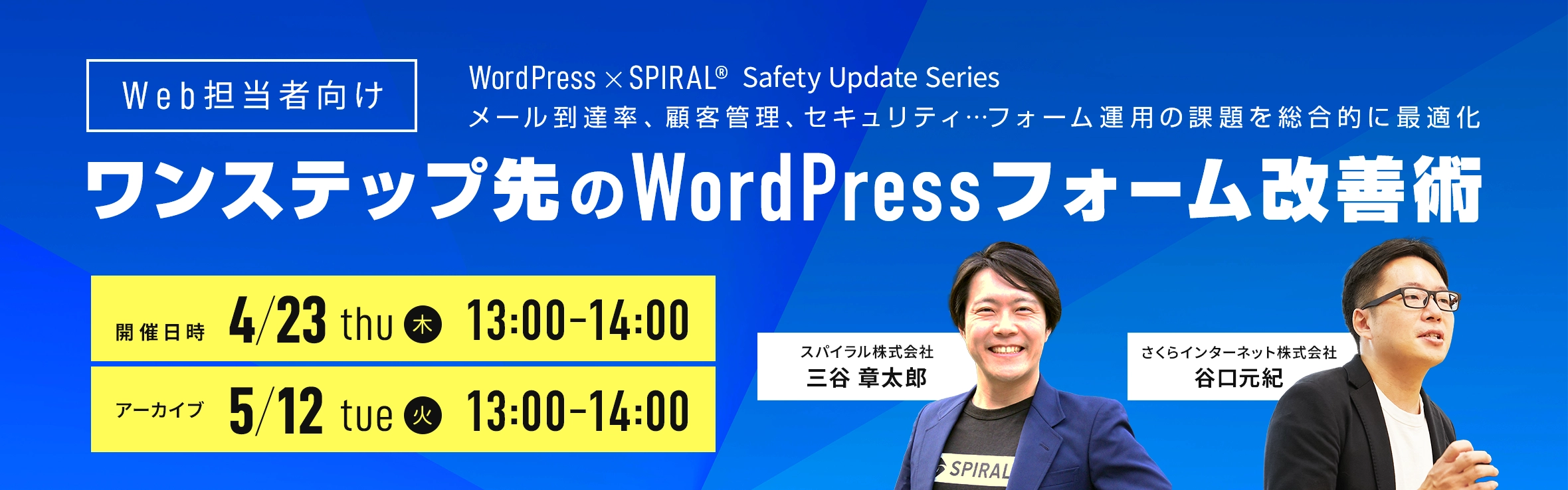WordPress × SPIRAL® Safety Update Series Web担当者向け ワンステップ先のWordPressフォーム改善術